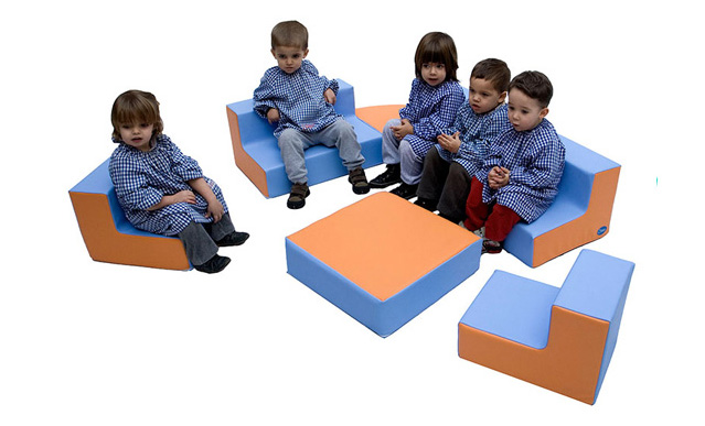 Mobiliario foam (mobiliario relleno de espuma) recubierto de PVC, cumpliendo con todas las normativas europeas: EN-71, garantizando un producto no tóxico, y UNE 23-727, que hace referencia al material ignífugo con calificación M2. Los materiales son antialérgicos, antibacterias y fácilmente lavables con agua y jabón, de esta forma nos ajustamos a las necesidades de guarderías, escuelas y centros para que puedan hacer un uso diario de el mobiliario de espuma, sin preocuparse del deterioro de la pieza.